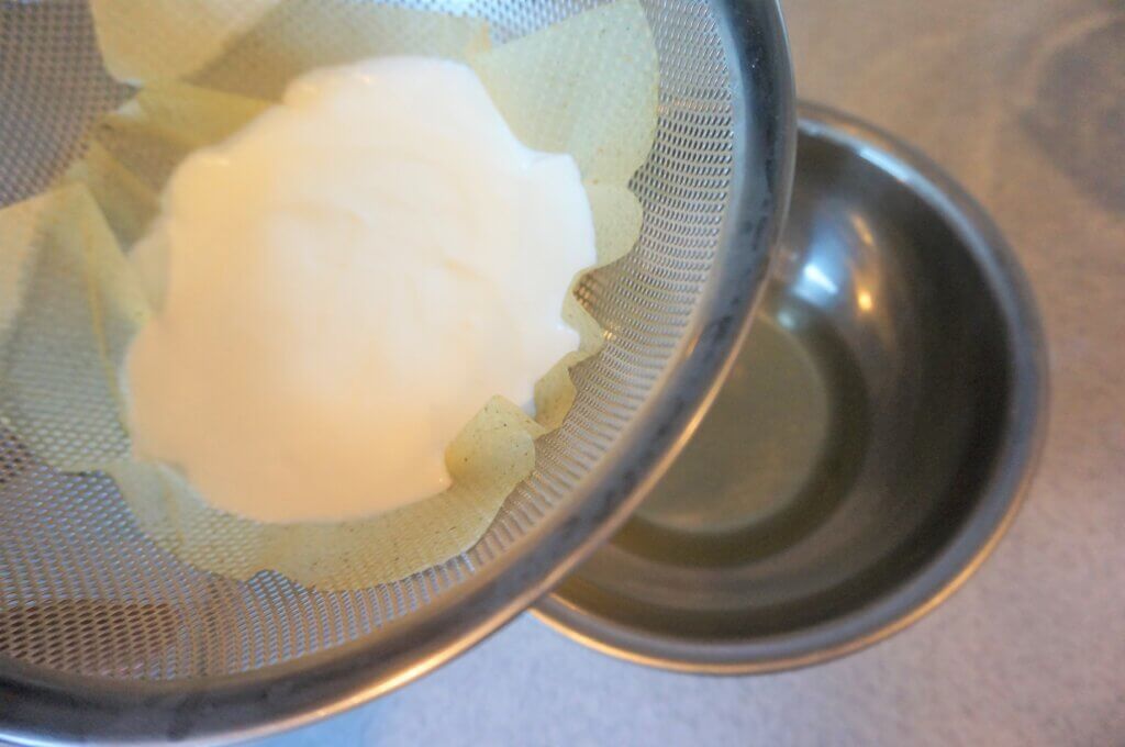 普段からカスピ海ヨーグルトを大量に作って食べているので、水切りヨーグルトもスイーツ作りに活用しています。