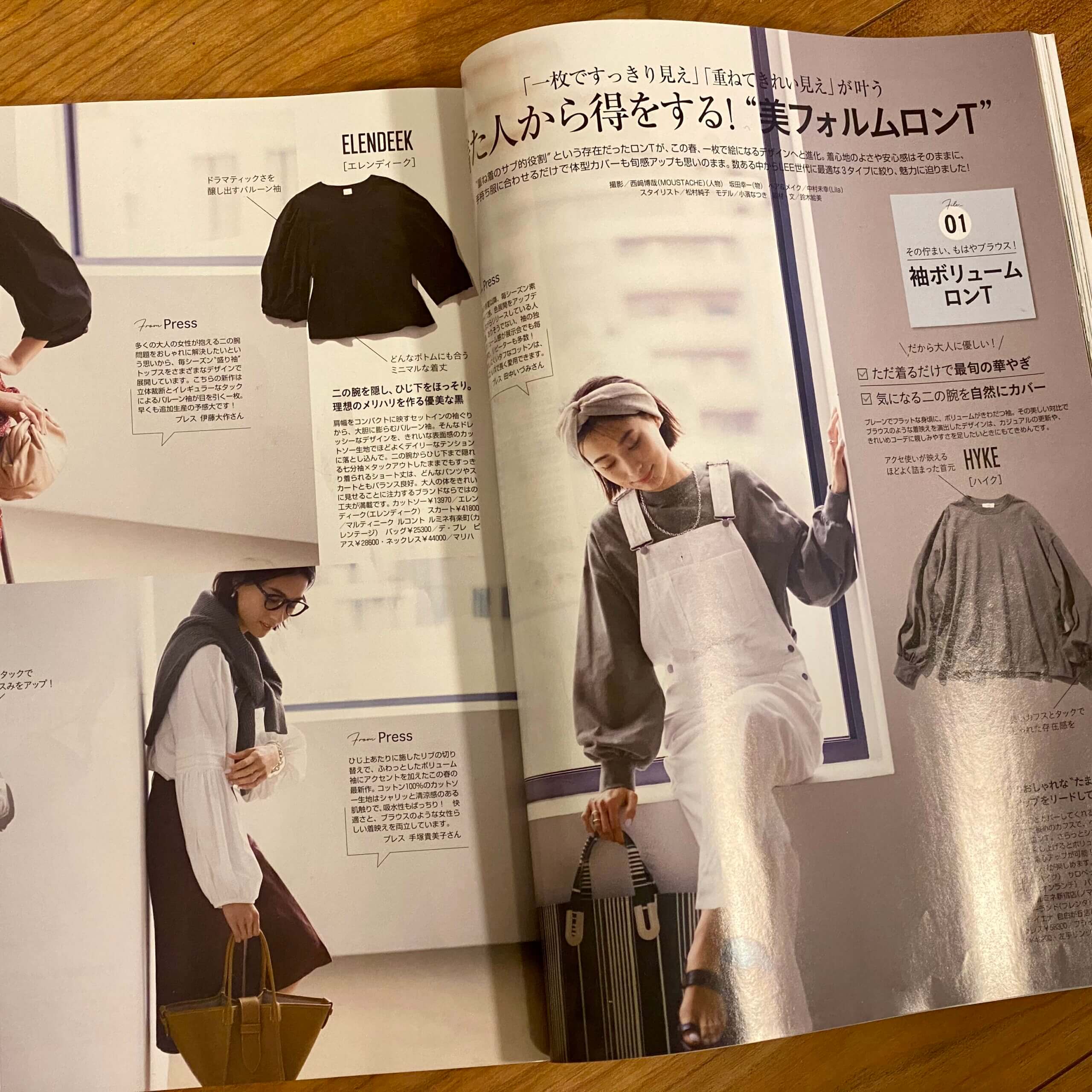 LEE5月号でも「着た人から得をする!”美フォルムロンT”」が載っていましたね。袖ボリュームロンT、一枚でブラウスのようにも着れるし、サロペットやベストの重ね着としても使えそう◎腕のラインをカバーしてくれるのが嬉しいですね。