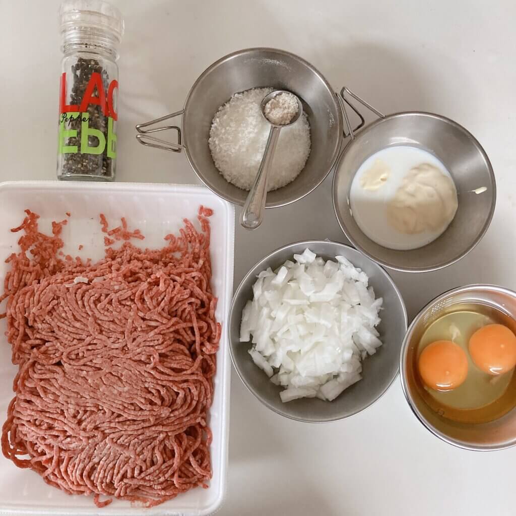 この写真でわかるように、玉ねぎは炒めなくてOK。もうこれだけでハンバーグのハードルが下がります!