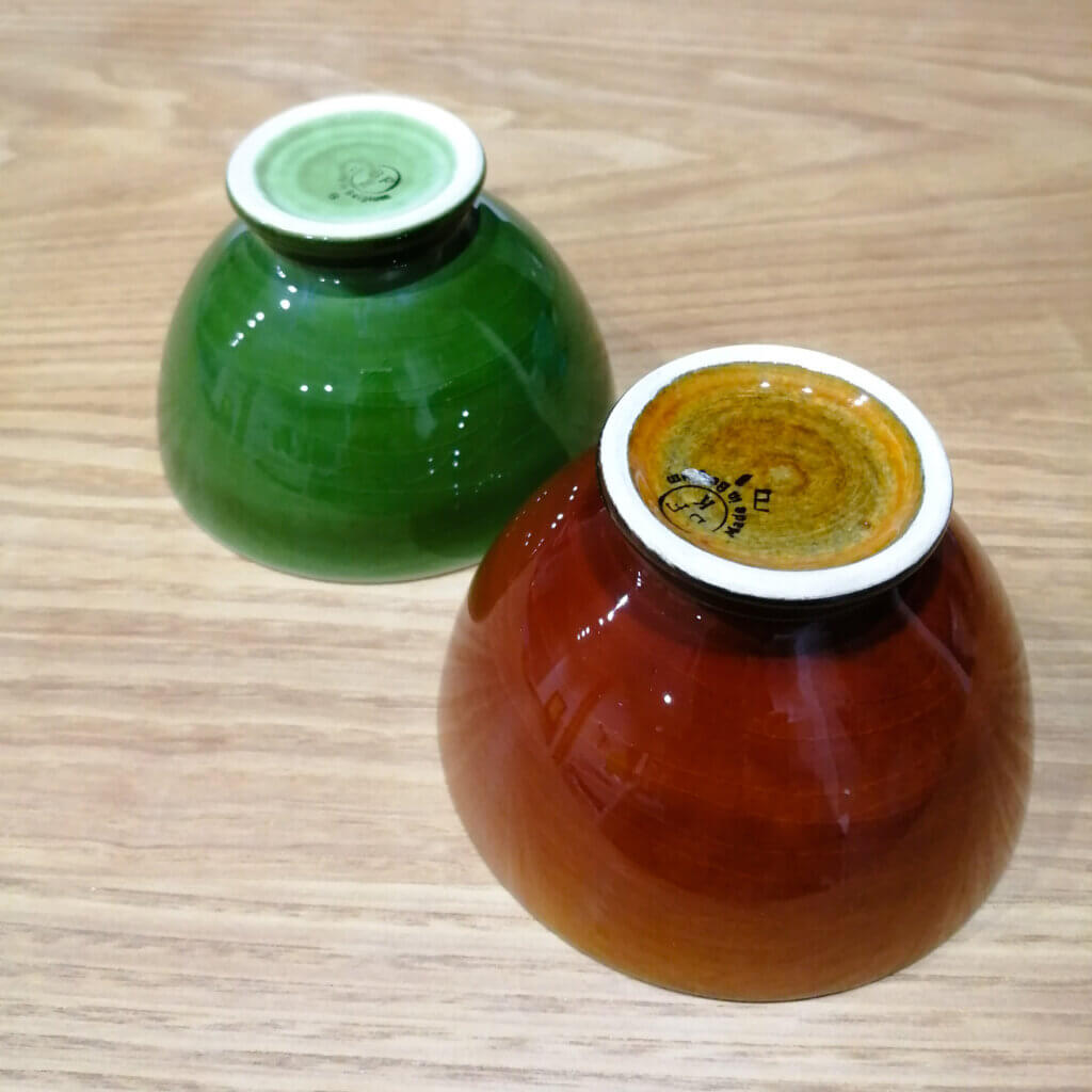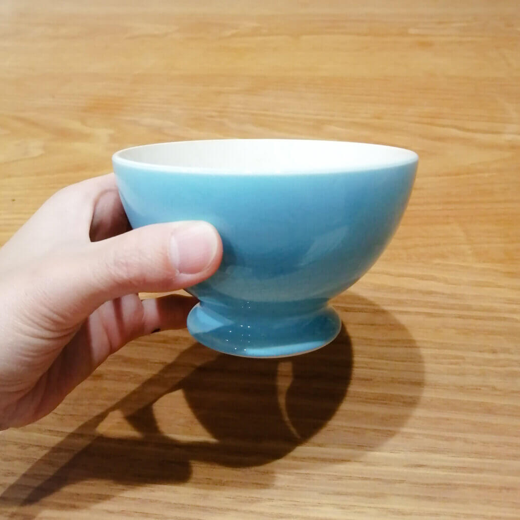奥のブルーの花柄のカフェオレボウルは刻印がなく、どこのメーカーのものかは不明。