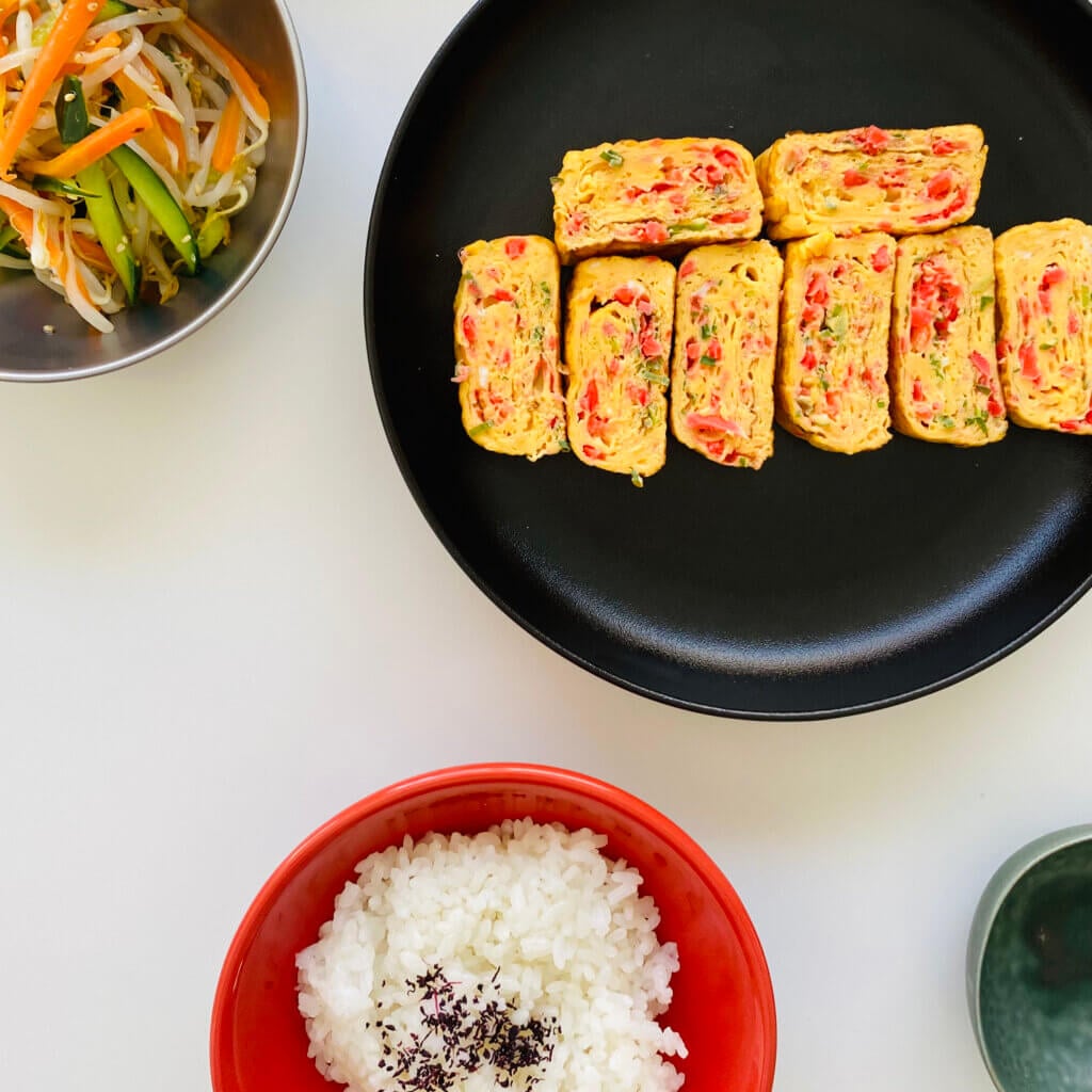 青ネギや紅しょうが、白胡麻などを入れるのが、夫のお弁当に入れるいつもの卵焼きです。