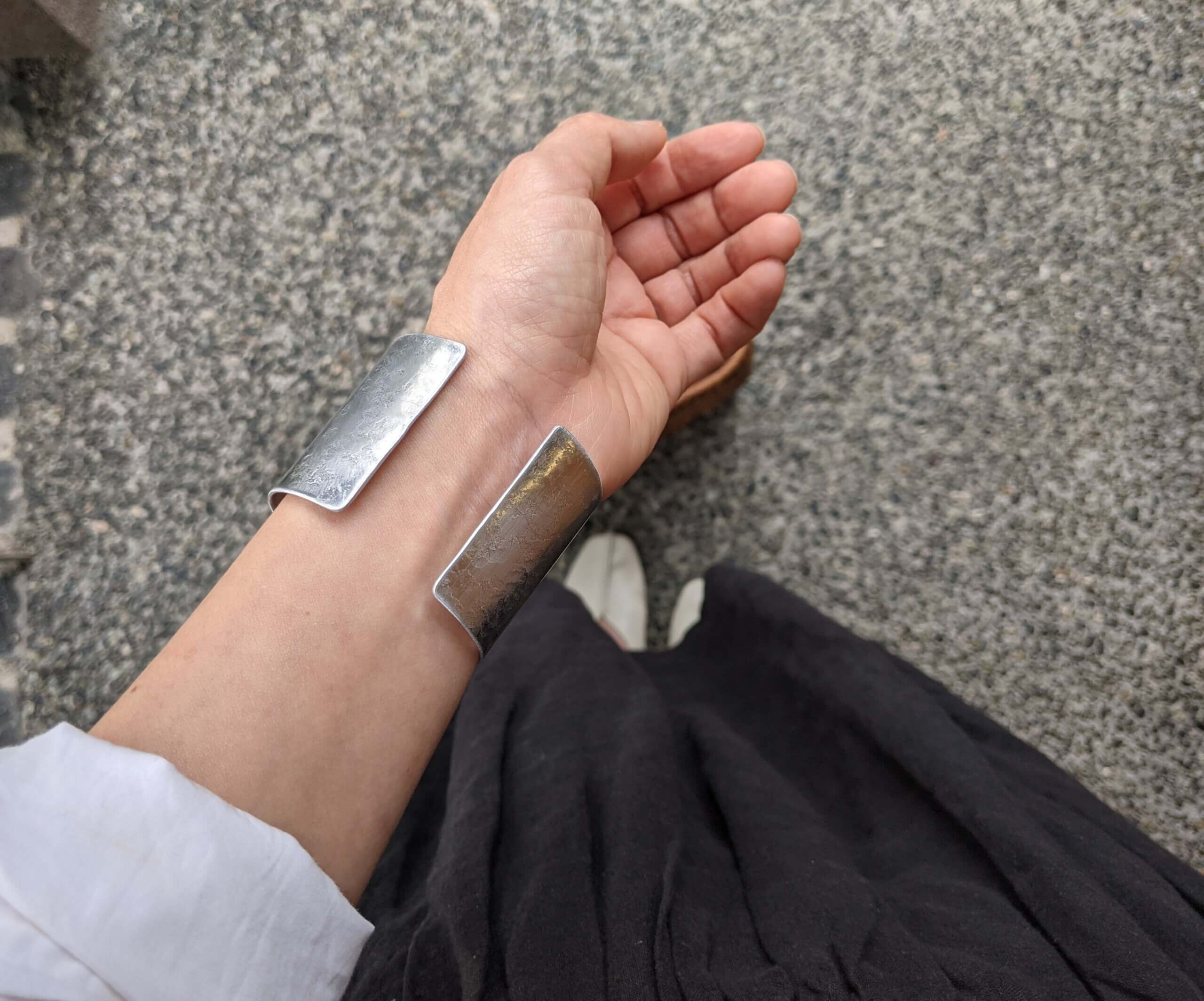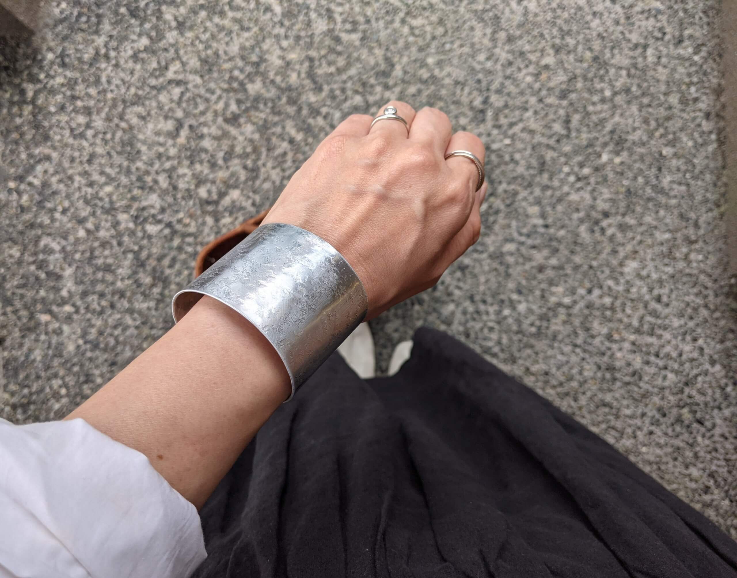 こころねさんが、アクセサリー作家 DECOプラスさんと作ったアルミのバングルを買いました。
