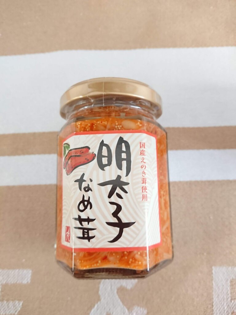 他の2点を持ってレジに向かおうとしたところで発見! 無性に気になって手に取りました。早速オンザライスで食べましたが、辛さをなめ茸がマイルドにしている感じで、玉子焼きに混ぜても良いかもと思いました。(明太子なめ茸&鮭フレークオンザライスも食べました。そちらも美味しかったです)