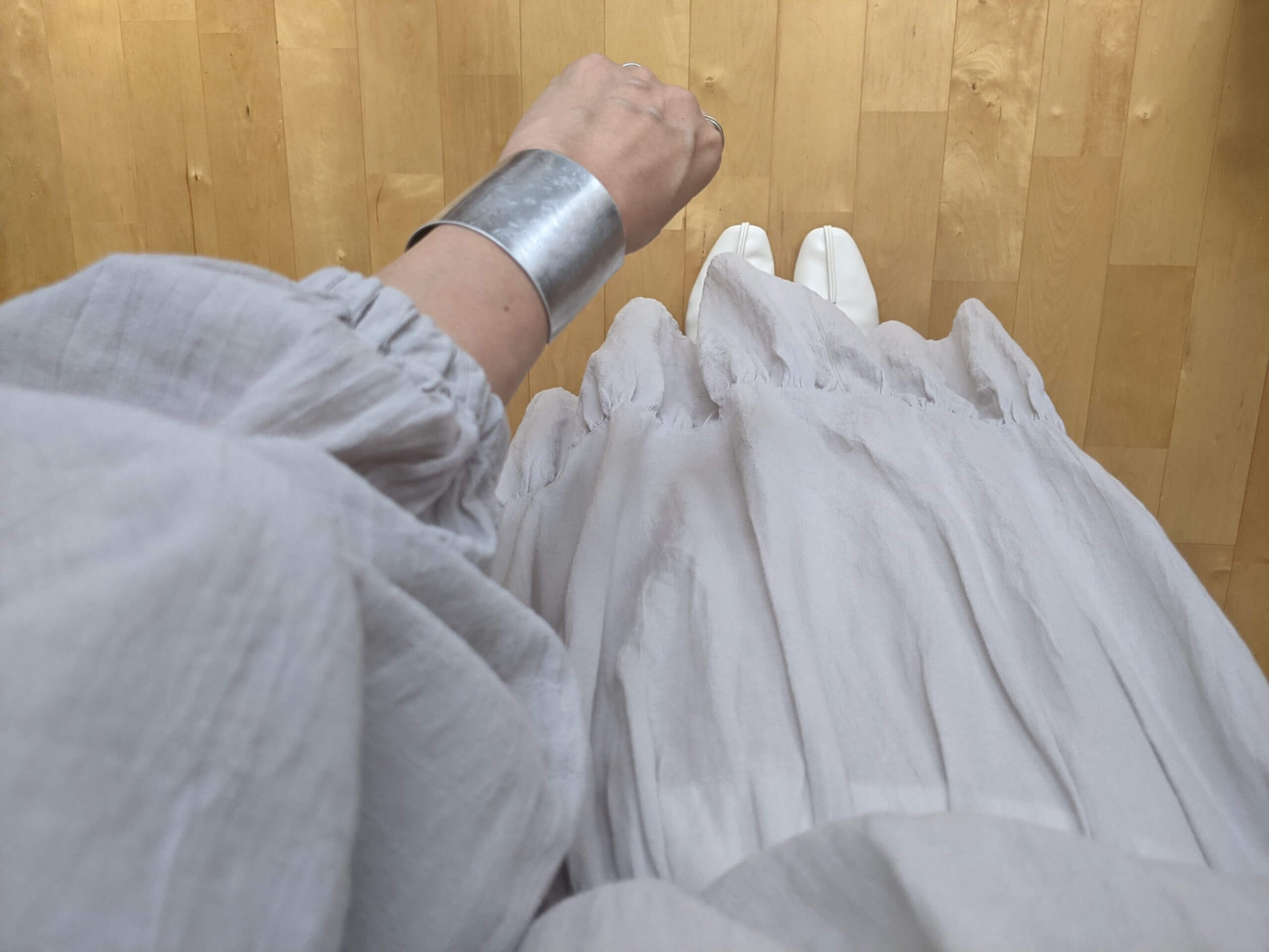 カシュクール部分が後ろに来るので、後ろにボリュームが出ますが、抜け感は出てるかな。