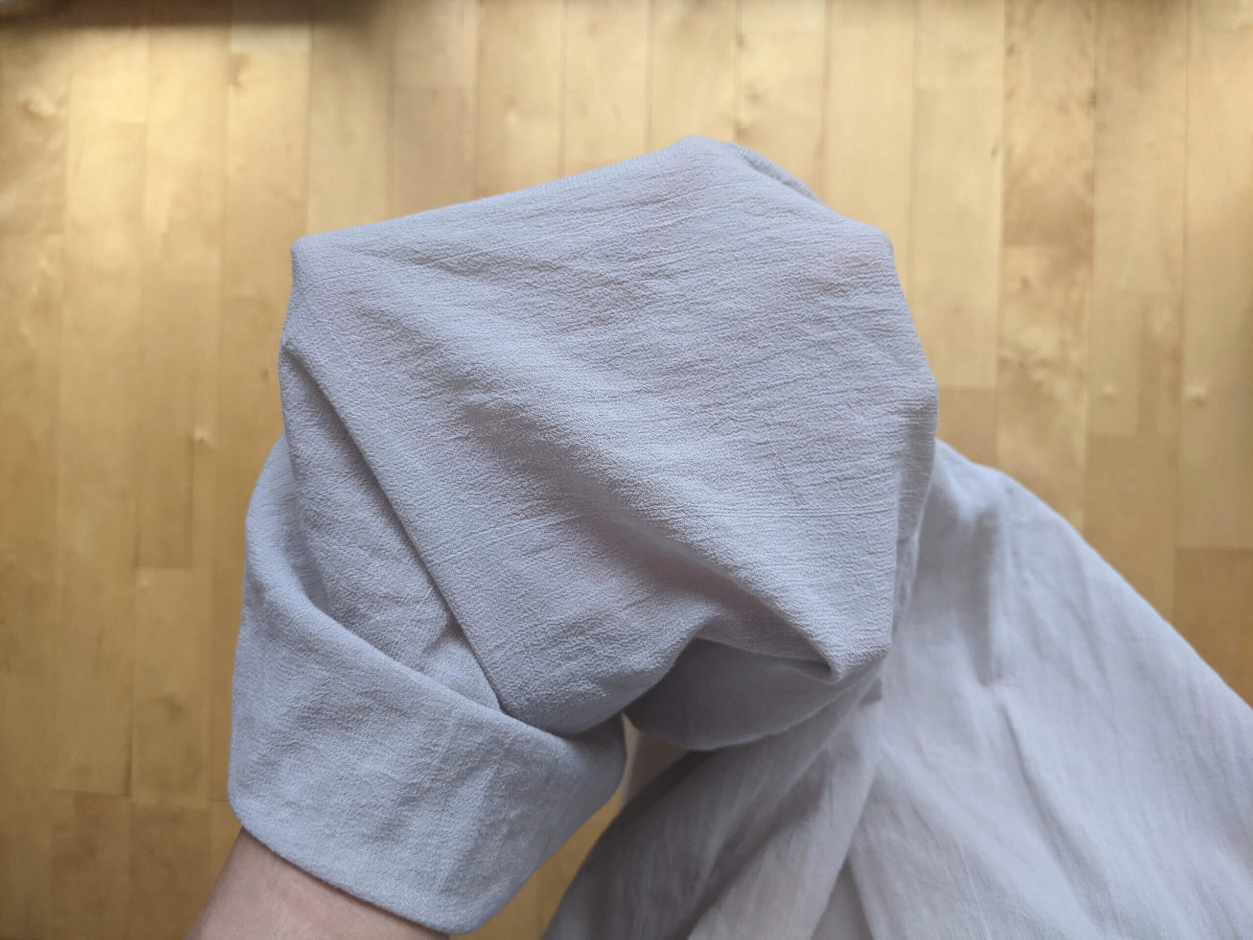 陽の当たる場所で後ろ前の状態で撮影しましたが、透け感はあまりないかと☺️