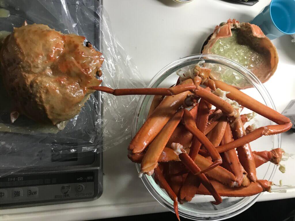 蟹味噌たっぷりのズワイガニを無事ゲットして帰宅後さっそくいただきました♡