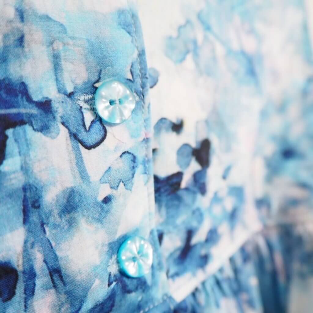 今回は生地に合わせて透明感のあるさわやかな水色のボタンを選びました。