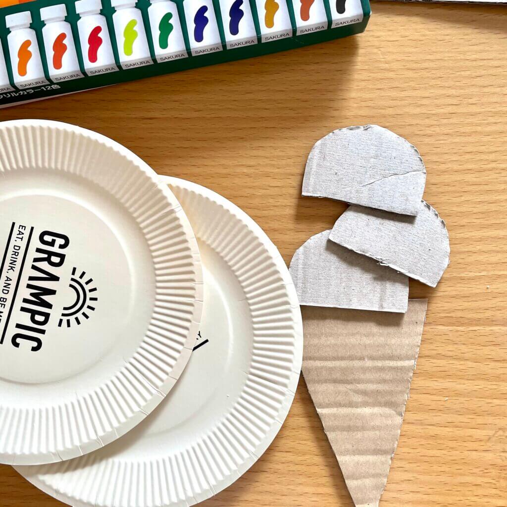 まず段ボールでアイスクリームと、コーンの形を切り抜く。
