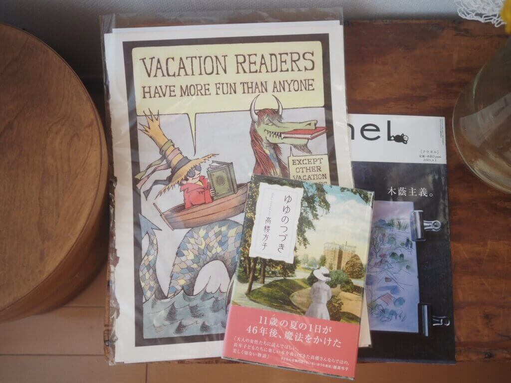 絵本作家モーリス・センダックの絵は何かの本の切り抜きなのかな?「VACATION READERS」の言葉がまさにこれから始まる夏の読書にぴったり!と思い、額に入れて飾ってみました(トップの写真)。