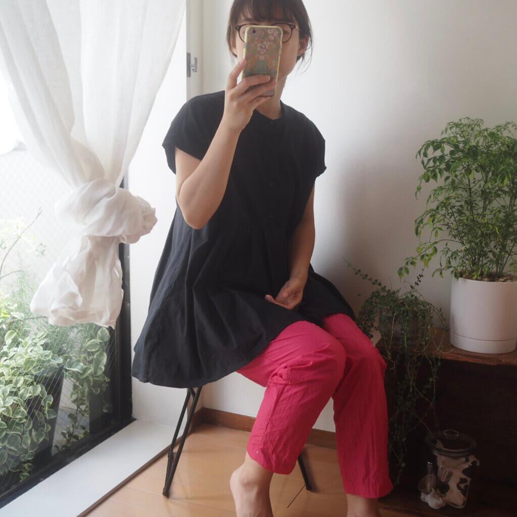 朝起きたとき、「今日はピシッといきたいモード」のときは硬めのデニム、「ゆるくいきたいモード」のときはリラックスできる素材のパンツやワンピースを着ています。