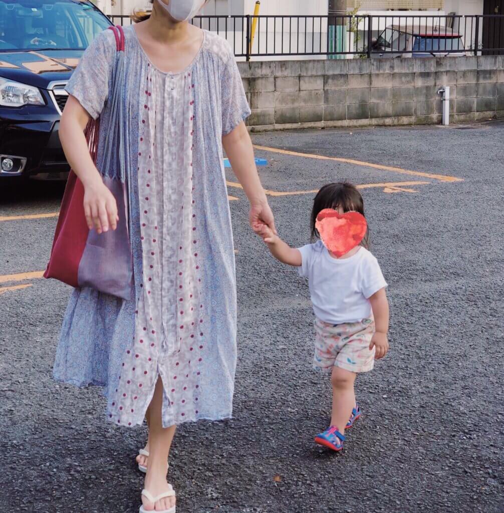 このワンピース、臨月のときは1日おきに着ていたし、入退院の日にも着ていたくらい、とにかくしめつけなくて楽。
