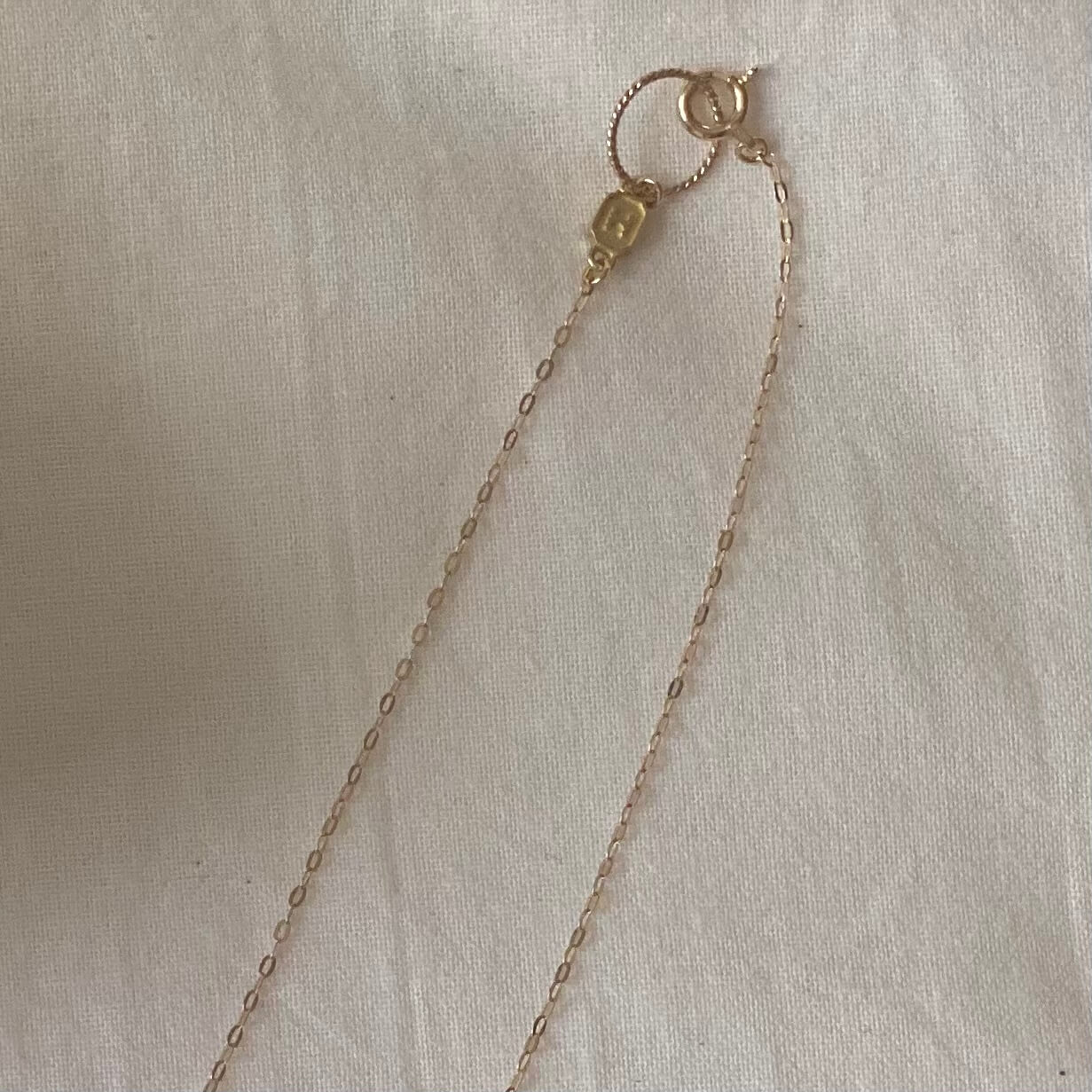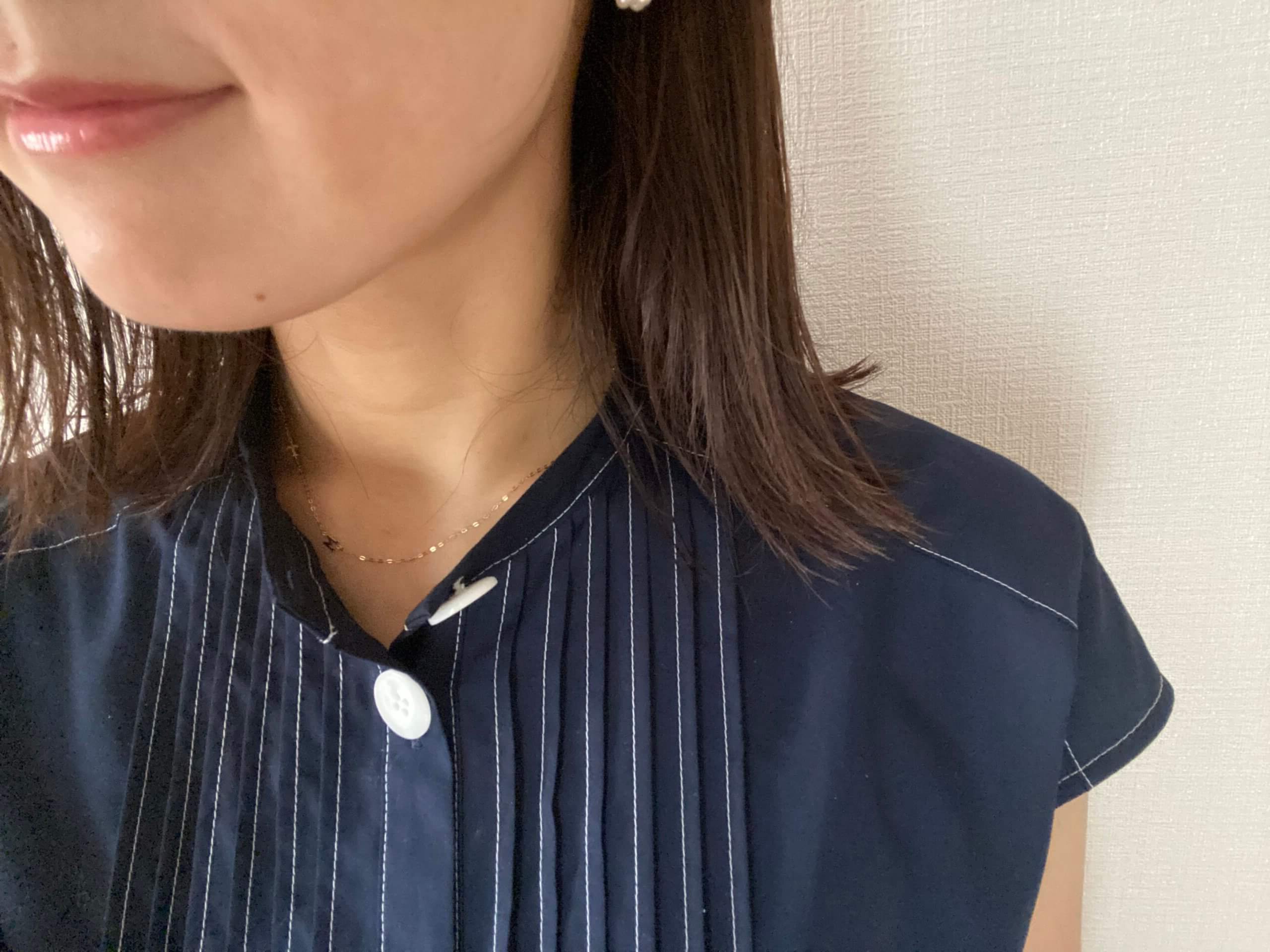 早速毎日つけています。写真、すごく見えにくいですね…すみません。首の日焼けが…。シンプルなので、仕事にもつけられるし、どんな服装にも邪魔をしません。お休みの日は重ねづけしても良いかも?