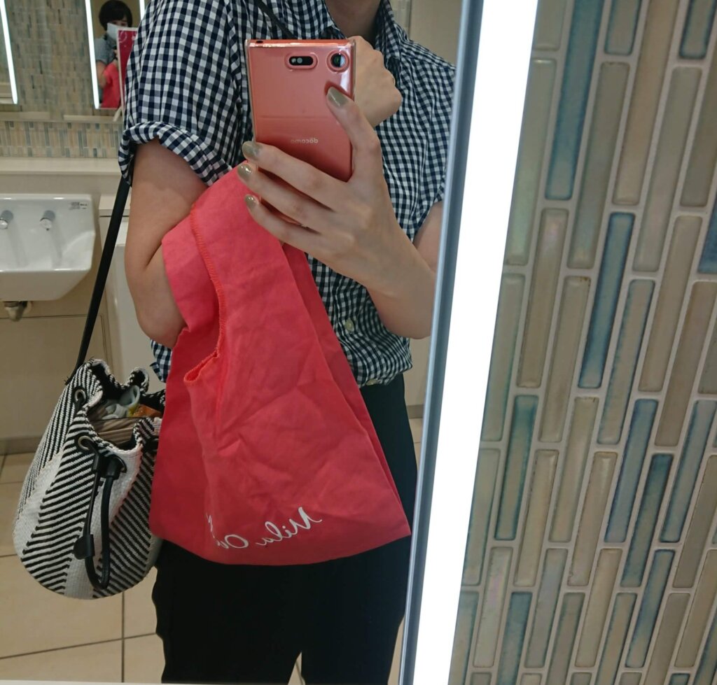 以前から気になっていたミラオーウェンのカラフルなエコバッグ。ライムイエローと迷って「ええい」とピンクをポチ。サブバッグでなら、明るめの色も気軽に取り入れられます。