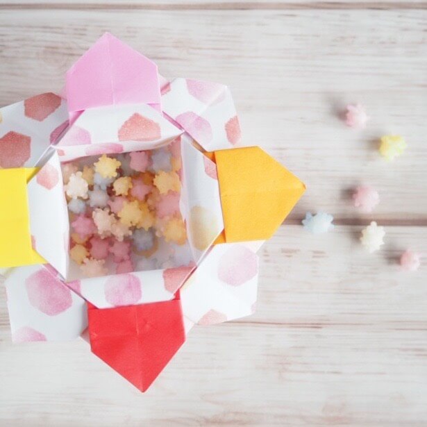 このままじゃ一瞬でなくなる!と思い折り紙でお菓子入れを作りました。