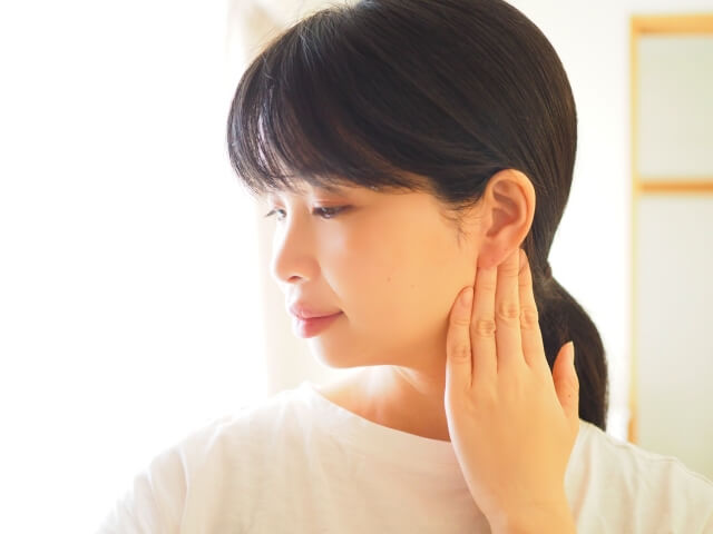 そして、紐が当たる耳の後ろ。