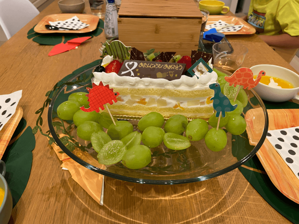 息子が選んだケーキが少し小さめだったので、奮発してシャインマスカットを追加^ ^