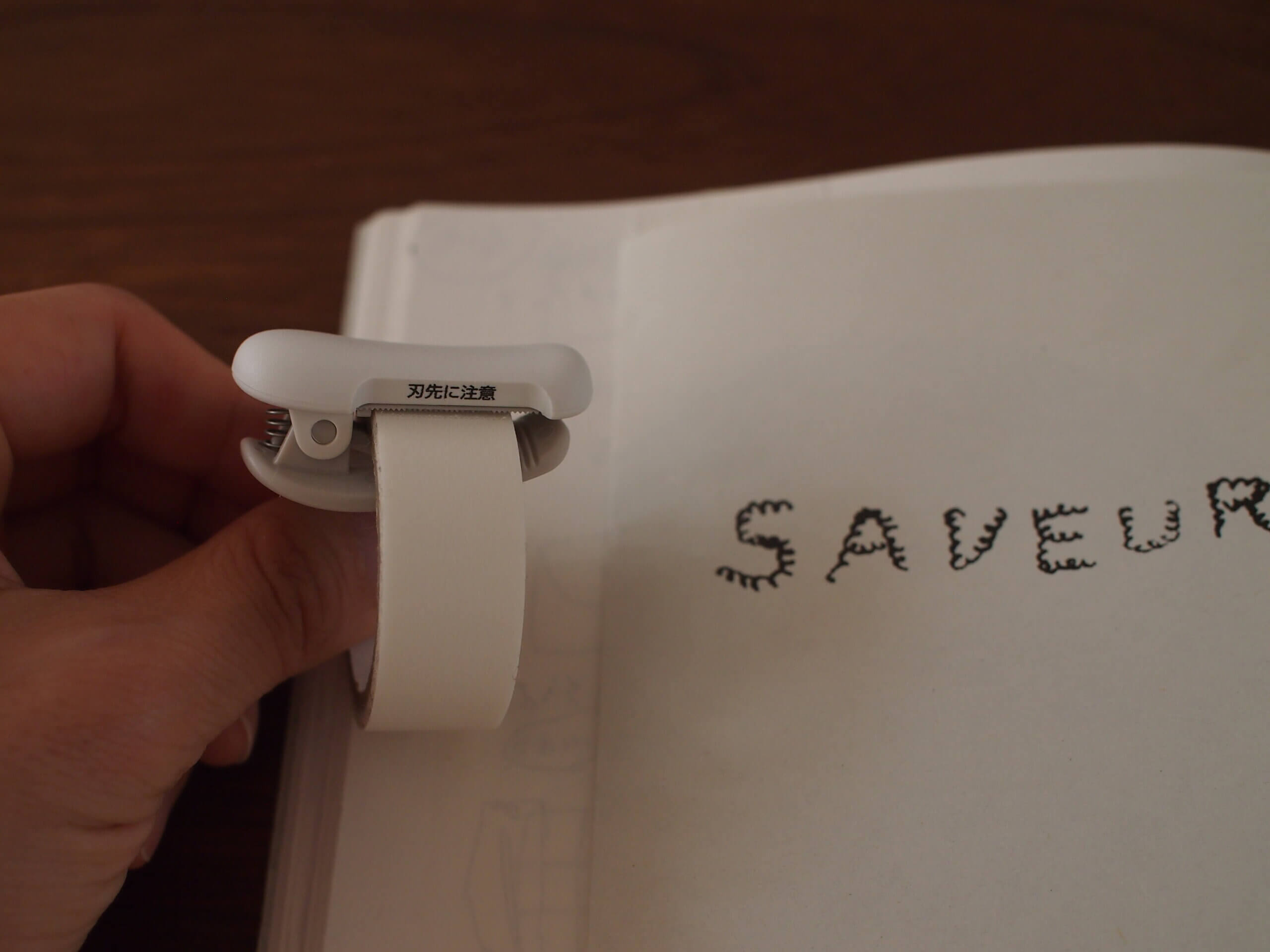 今までは、小さいテープカッターを使っていて、取り替えるのが面倒で、結局同じマスキングテープを使いがちになっていたのですが、先日、このマスキングテープカッターを買って、驚きました。