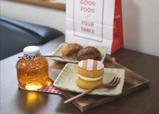 お店は、小さな空間なのですが、カウンターにたーーーくさんの焼き菓子やキッシュ、ベーグル、ジャムなどが並んでいます。
