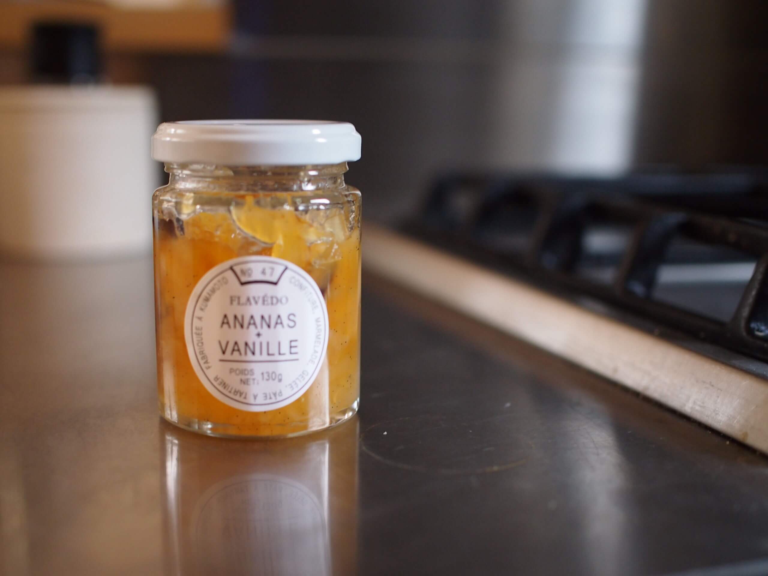 フィリングの上に、フラペドさんのパイナップルとアニスのジャムを入れて焼きました。