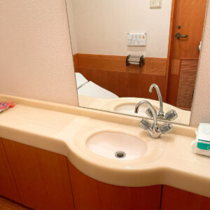 洗面ボウルしたのデッドスペース解消のために、既存部品を改造して中に棚を作ってもらいました。