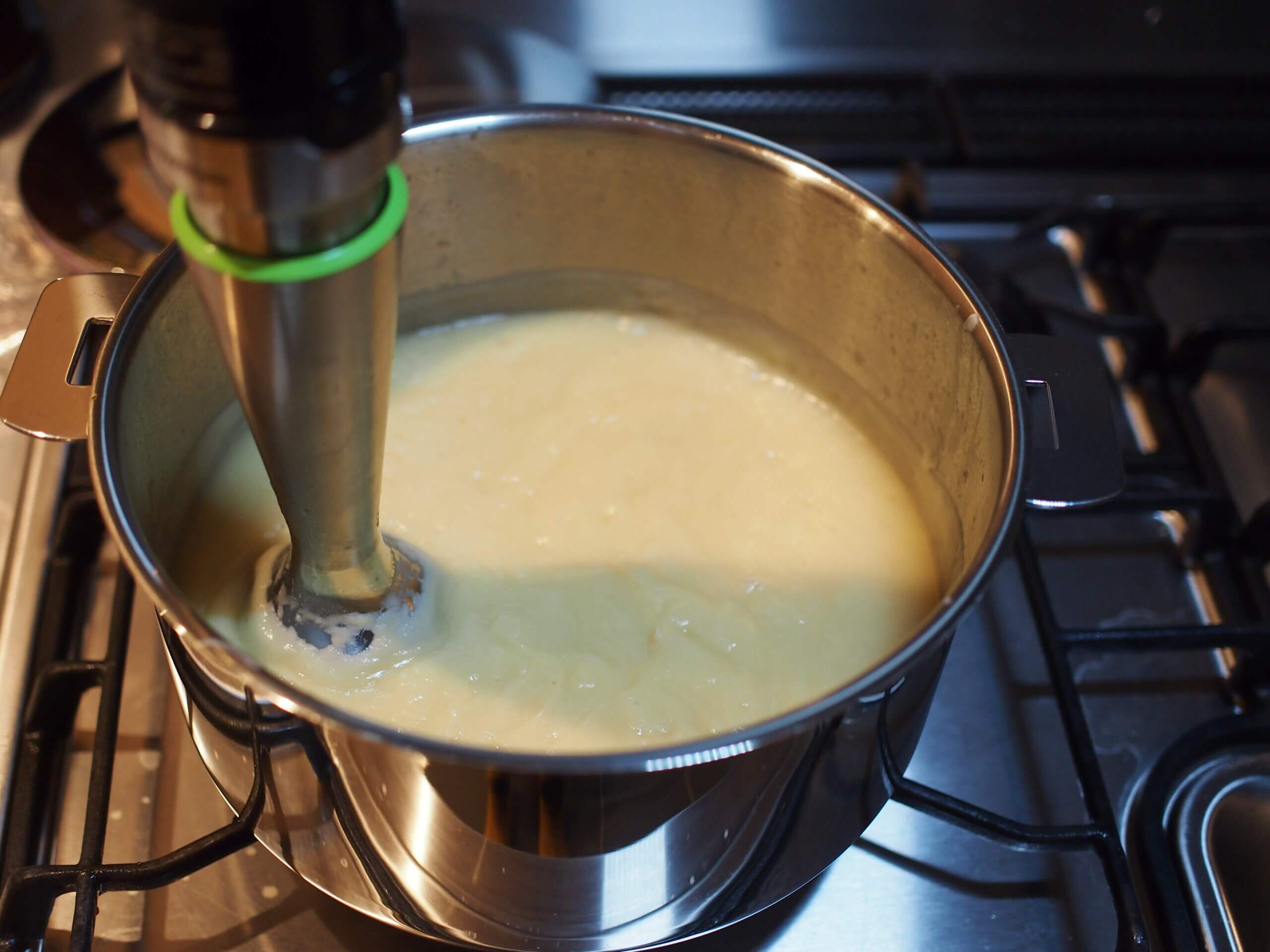 ポタージュスープは、鍋の中でガーッとできます。