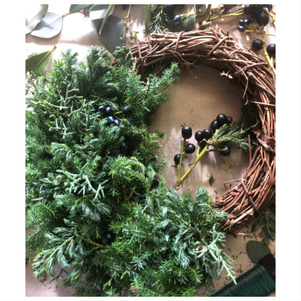 クリスマスリースやスワッグの手作りワークショップを開催していて。