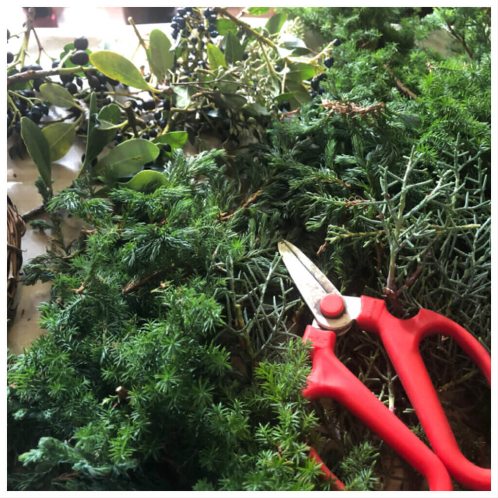 なんとなくカットして、、リースに枝を巻いて、、を繰り返していると、どれくらいのサイズでカットしたらいいかがわかってきました!