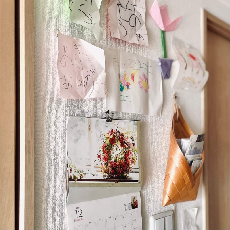 子ども達が書いてくれたお手紙なども貼っていて、殺風景な我が家だけど、ここだけちょっとほっこり♩