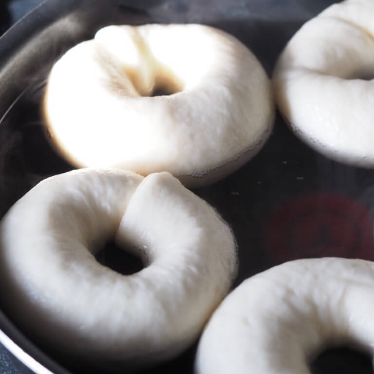 蜂蜜を溶かしたお湯で茹でるのもベーグルならではです。