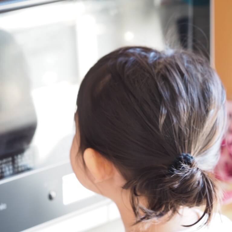 焼けるのが待ち遠しくてオーブンの前に張り付いているのは次女です。