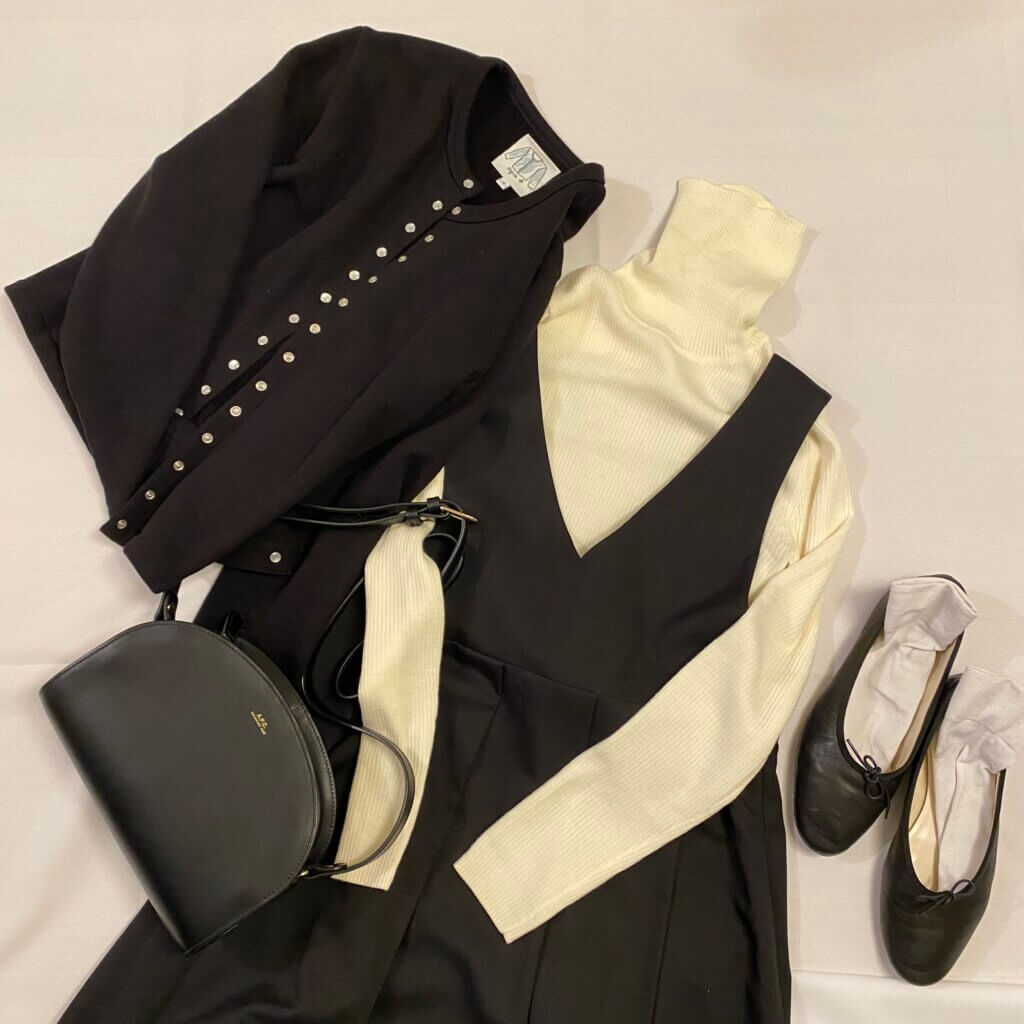 そのなかでも【フレンチカジュアルの黒名品があれば】では、普遍性の高いフレンチブランドの黒にフォーカス!福田真琴さんによるスタイリング提案がされています。