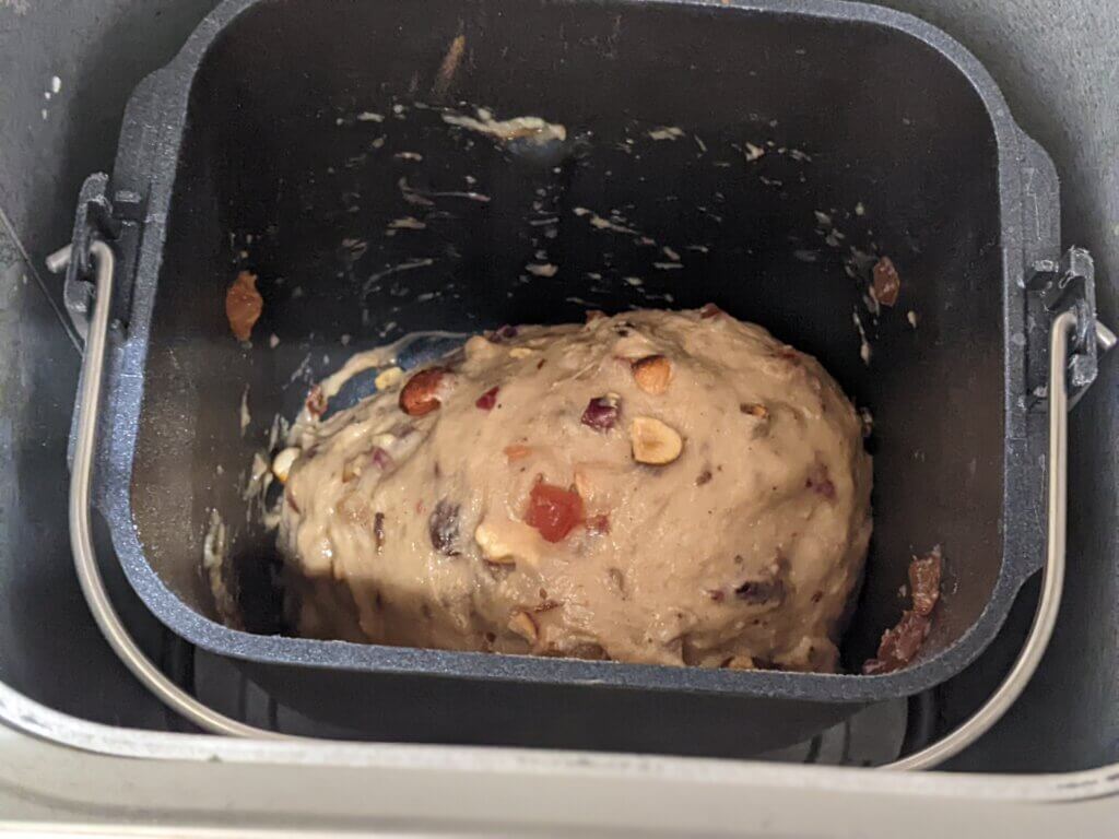 ④具材投入の合図でドライフルーツとナッツを加えてそのまま1次発酵~