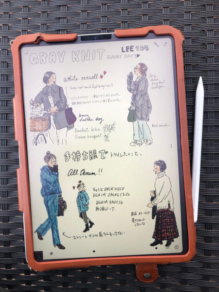 今年の冬はこのグレーニット達と黒のタートルネックセーターをぐるぐる着回していて、今月号の特集で白を入れたい!と改めて思いました。