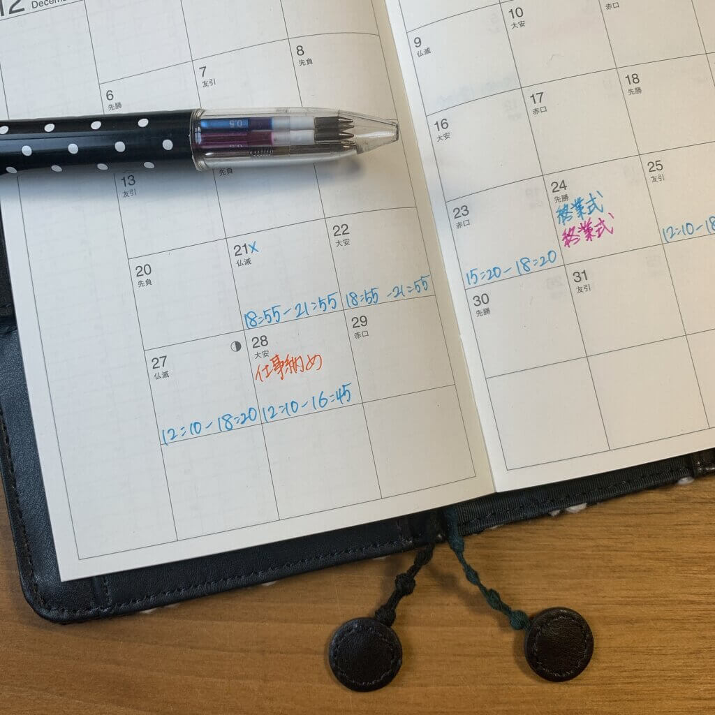 スケジュール帳に予定を書き込んだり、眺める時間が意外と好きだったりします。