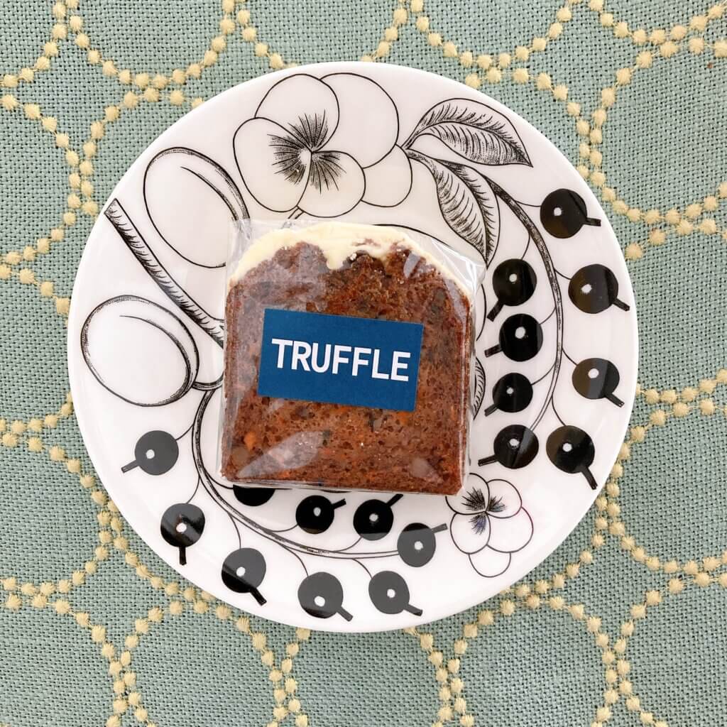 このロゴとチーズクリームがのっているのが可愛くて、結構にんじんは他のキャロットケーキに比べると大きめでした。