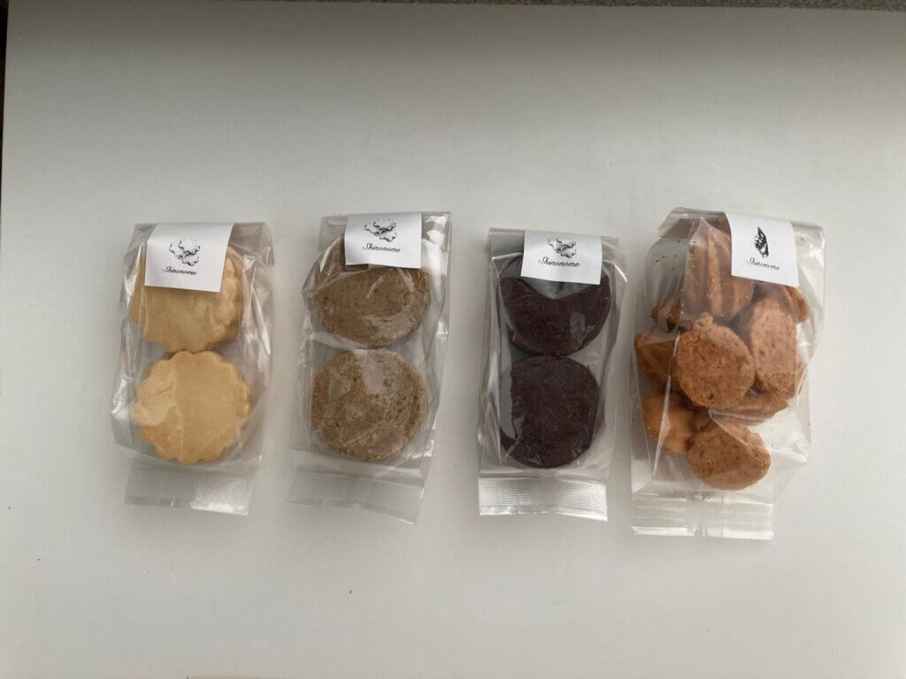 ショートブレッド、チャイクッキー、ショコラクッキー、チーズクッキーです。