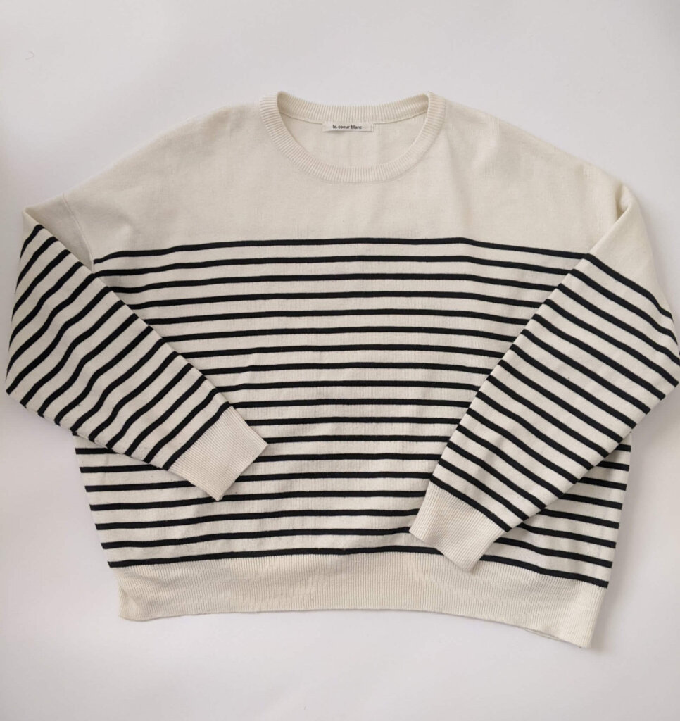 私が持っている一番新しいボーダーアイテムは去年購入したle.coeur blanc のニットです。(去年のものですみません。)