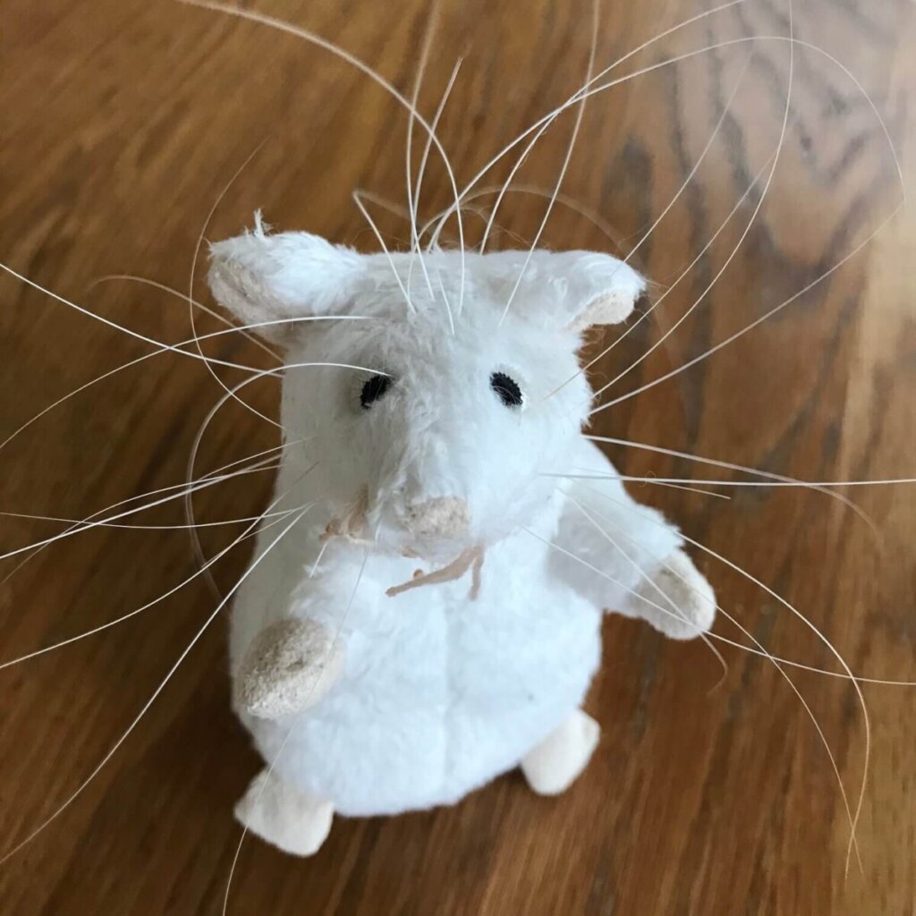 はじめは、ネズミのひげにいいな!とぬいぐるみに猫のひげを刺していたのですが、
