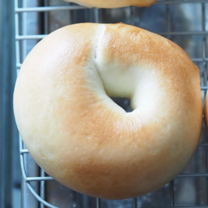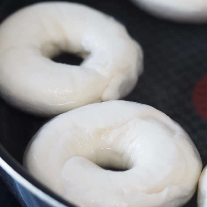 これもベーグルの特徴ですね!「つるピカになれ~」と念を込めて茹でます。
