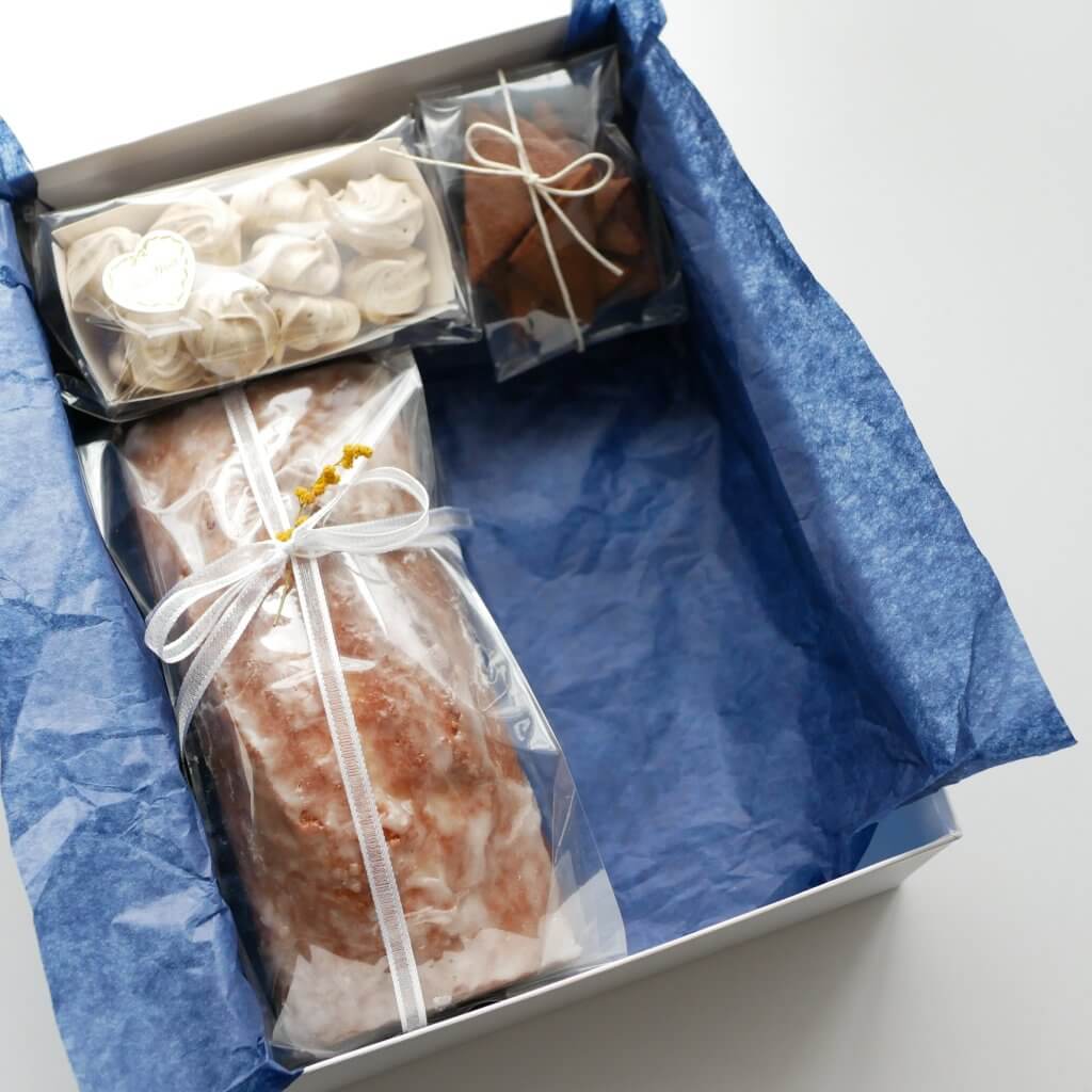 詰め合わせるならしっとり系(パウンドケーキなど)と乾燥系(クッキーなど)の両方を入れたくてこだわってみました。
