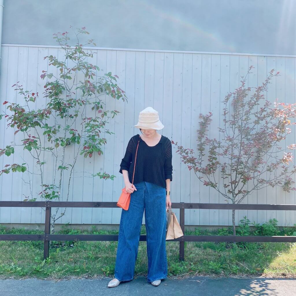 先日購入したばかりのGUレース編みニットに51/2ワイドデニムを履いていきました。日差しが強かったので去年BYで買ったバケットハットを。
