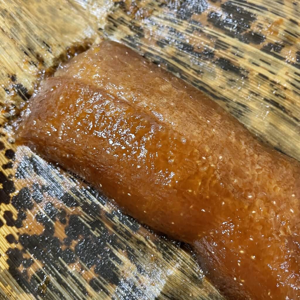 灰汁にもち米を一晩漬け、孟宗竹の皮で包んだ後に灰汁で炊き上げて作るそう。