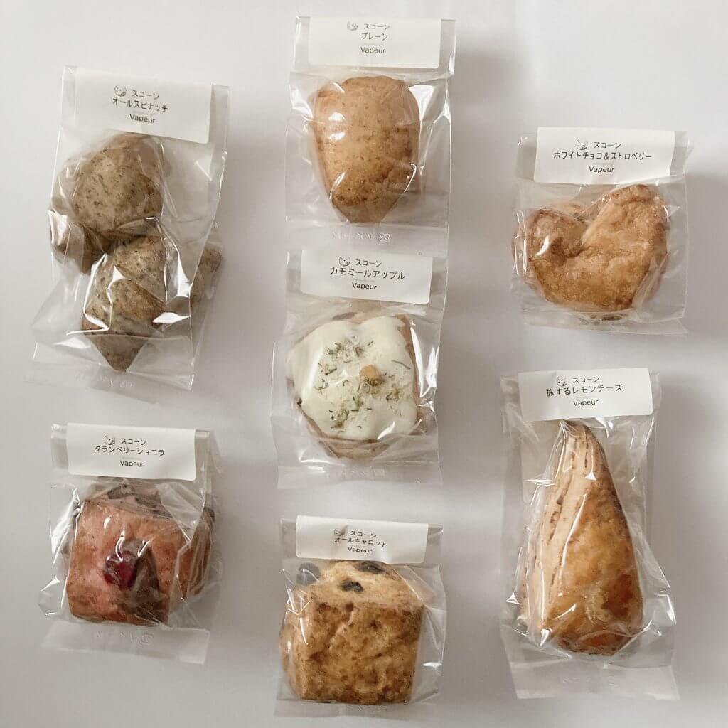 スコーン。こちらも全種類。カモミールアップルとオールスピナッチがはじめましてです。