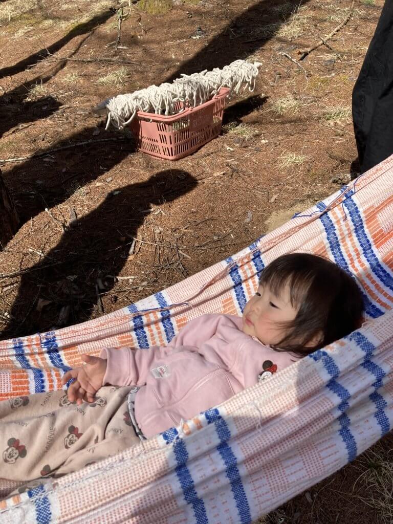 かすみさん家のハンモックでゆらゆら揺れる次女。写真これしか撮ってない😭