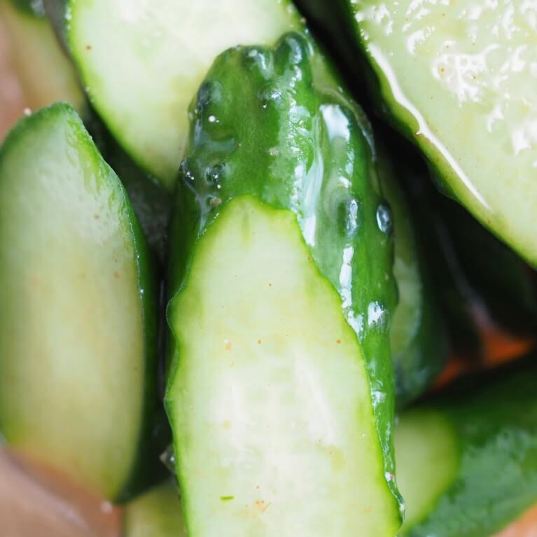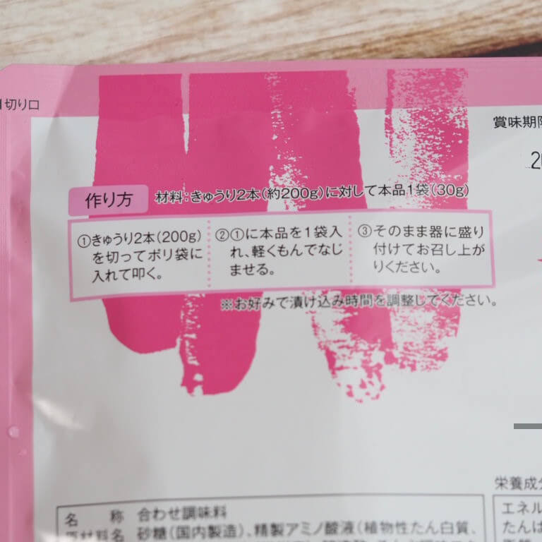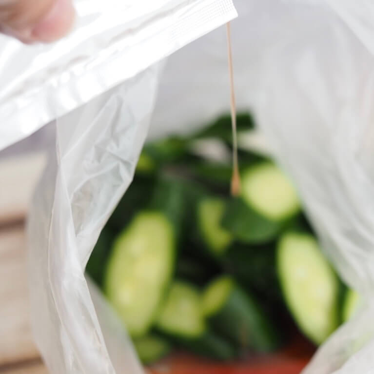 切ったキュウリを袋に入れてたたきキュウリの素を入れます。