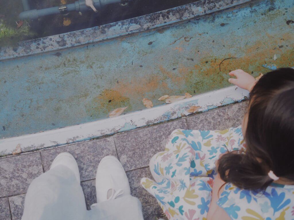 池のおたまじゃくしの観察に夢中になっていました。