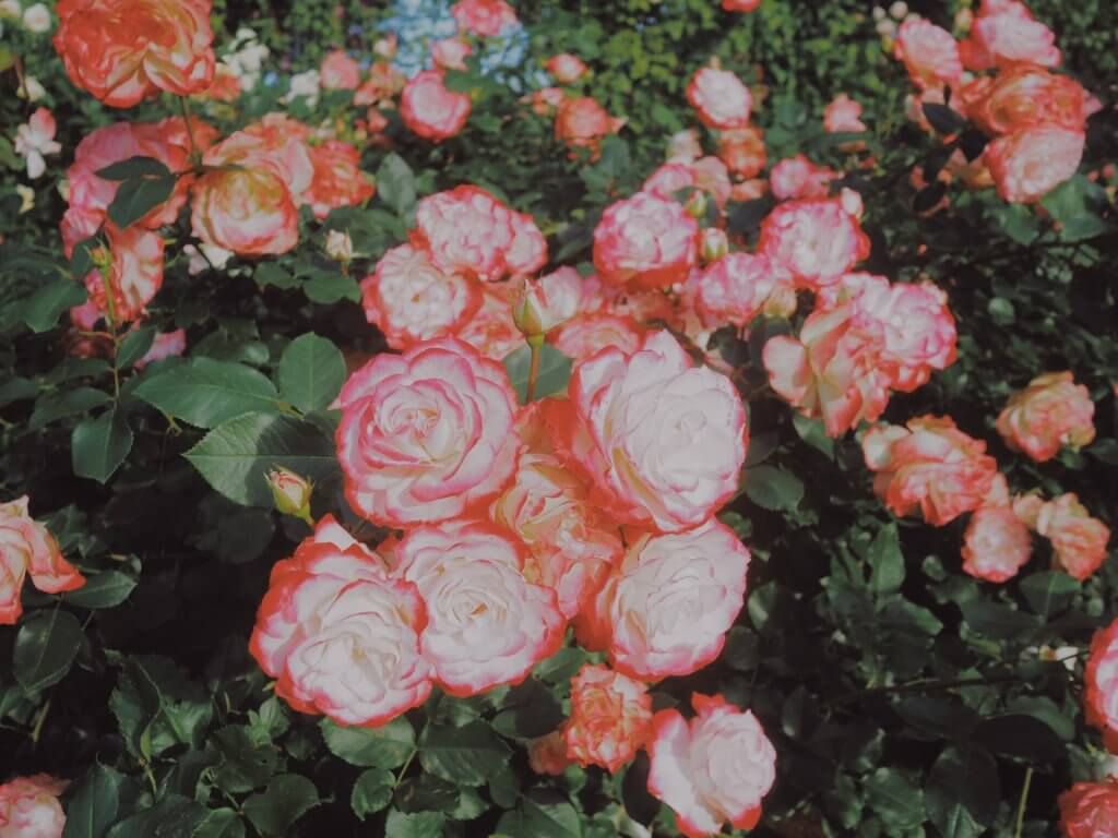 こんもり咲くバラ、バラ、バラ。