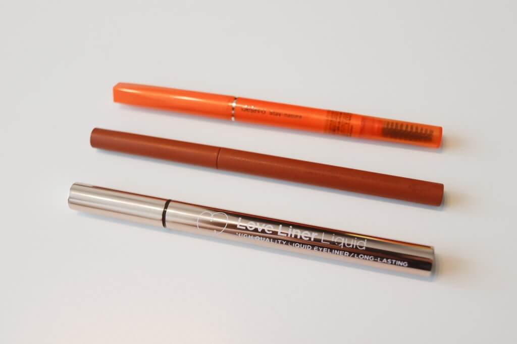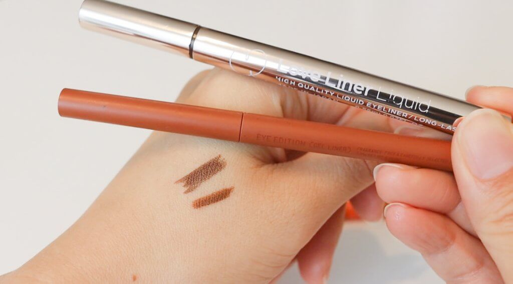 上:Love Liner Liquidリキッドアイライナー ダークブラウン 下:エテュセ アイエディション(ジェルライナー)04オレンジブラウン