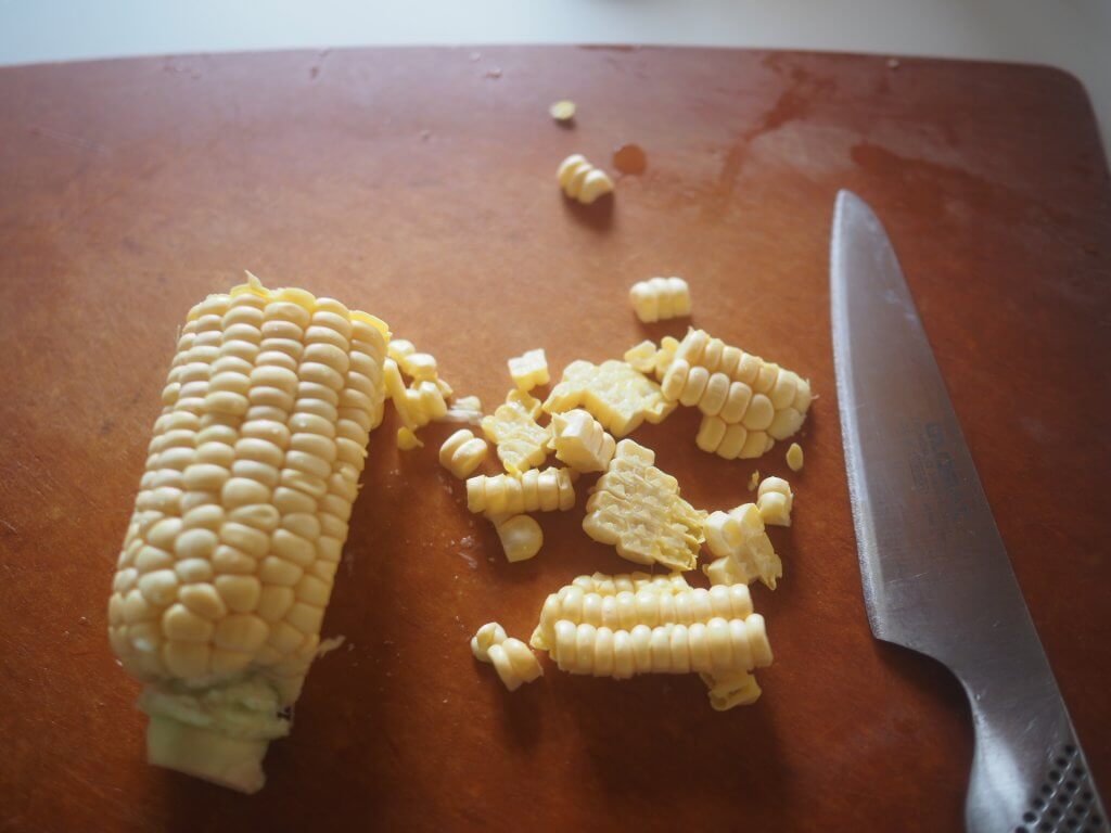 あっさりした味つけですが、とうもろこしの甘みがしっかりアクセントになっているのです。
