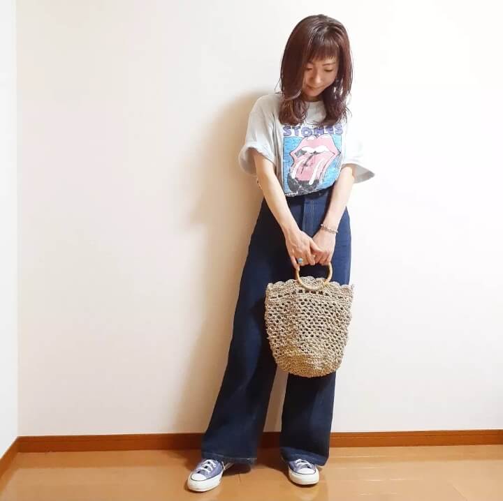 シンプルに同じ色味の入ったTシャツとデニムがとっても可愛いくてお気に入りです。